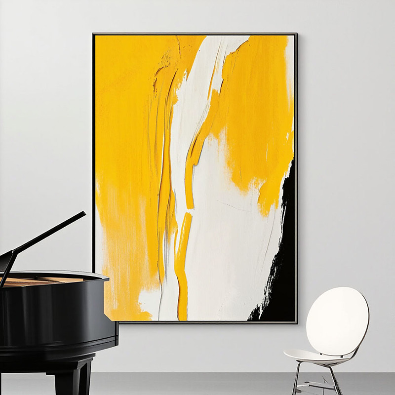 Large hand painted Abstract Yellow White Black Canvas Art Handmade Acrylic Oil Painting for Modern Living Room Decor Contemporary Wall Mural painting wall art picture