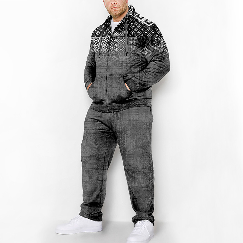Men's Graphic Bohemian 2pcs 3D Sweatshirt Sets Tracksuit Zip Up Hoodies Long Sleeve Long pants Hooded Fashion Designer Casual Daily Sports Going out 3D Print Spring Fall Blue Green Coffee