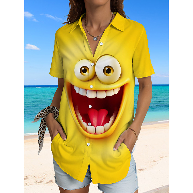 Women's Shirt Long Sleeve Button Down Blouse Graphic 3D Vintage Tropical Daily Sleeveless Short Sleeve Shirt Collar Regular Tops Daily Yellow Pink Green Summer Spring