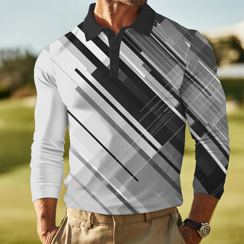Men's Geometic Line Polo Long Sleeve Polo Shirts Lapel Business Casual Athleisure Daily Wear 3D Print Buttons Spring Fall Winter Red Blue Green