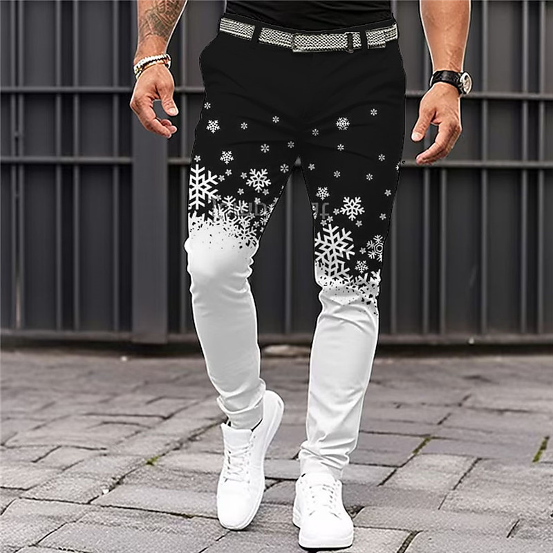 Christmas Men's Christmas Scene Printed Pants Snowflake Casual 3D Print Trousers Outdoor Daily Wear Streetwear Polyester Black S M L Medium Waist Elasticity Pants