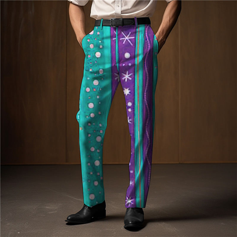 Christmas Men's Christmas Scene Printed Pants Geometry Business Casual 3D Print Dress Trousers Outdoor Daily Wear Streetwear Ugly Polyester Wine Yellow Blue S M L Medium Waist Elasticity Pants
