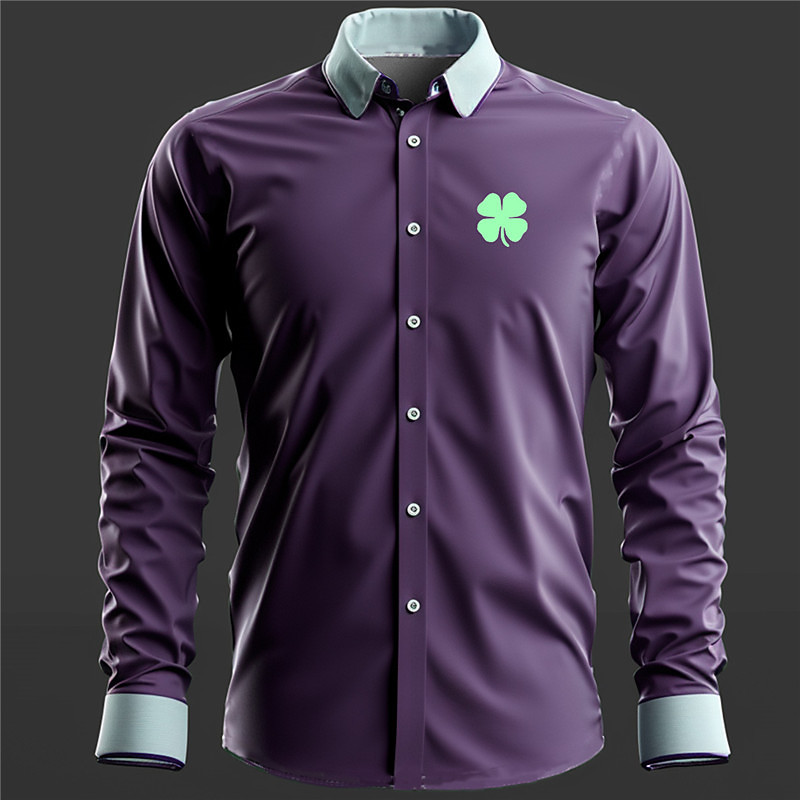 Four Leaf Clover Men's Fashion Casual 3D Printed Shirt Holiday Vacation Festival Spring Summer Turndown Long Sleeve Blue Purple Brown S M L 4-Way Stretch Fabric Shirt St. Patrick
