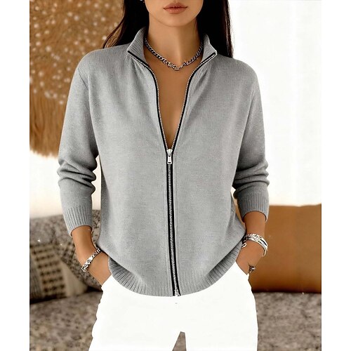 Per donna Cardigan Elegante Vintage Moda Tinta unica Collo alla coreana Lavorato a maglia Manica Lunga Top Regolari Maglia Formale All'aperto Casa Nero Rosso Primavera Autunno