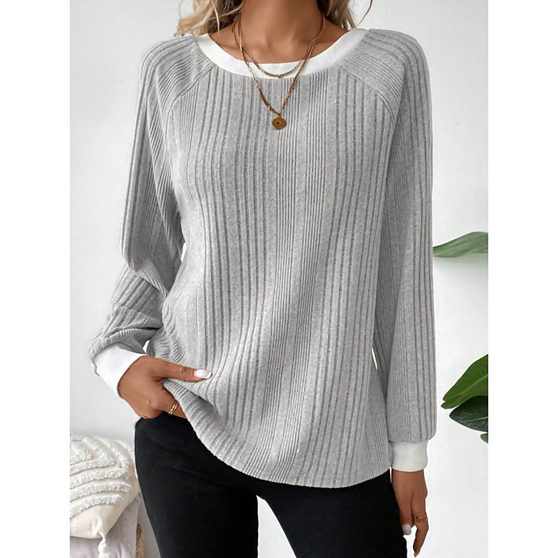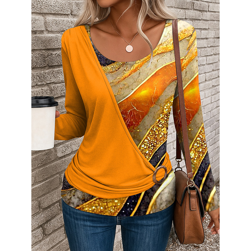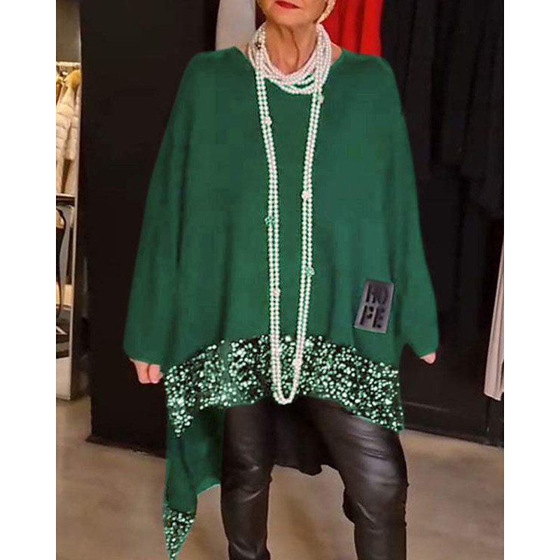 Women's Blouse Color Block Stylish Modern Long Sleeve Crew Neck Regular Tops Daily Holiday Going out Sequins Patchwork Black Red Blue Brown Green Fall