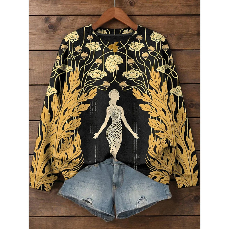 Women's Pullover Sweatshirt Floral Graphic Casual Long Sleeve Crew Neck Round Neck Regular Tops Street Dailywear Casual Yellow Dark Green Green Spring Fall Winter