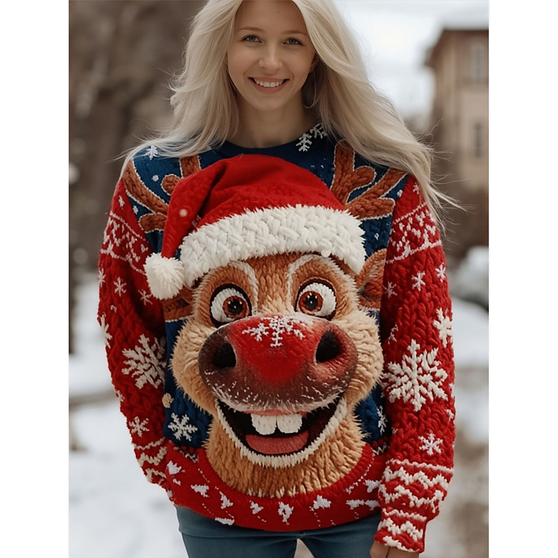 Christmas Women's Sweater Cute Streetwear Casual Graphic Santa Claus Snowflakes Crew Neck Patchwork Knitted Long Sleeve Regular Tops Knit Christmas Party Red Spring Fall
