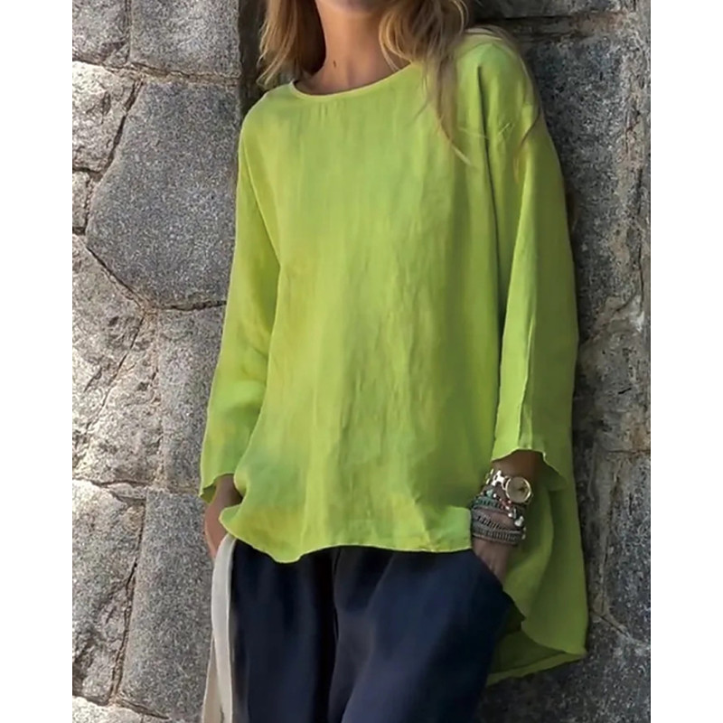Women's Blouse Solid Color Active Casual Long Sleeve Crew Neck Regular Tops Daily Holiday Asymmetric Hem Black White Yellow Red Green Fall Winter