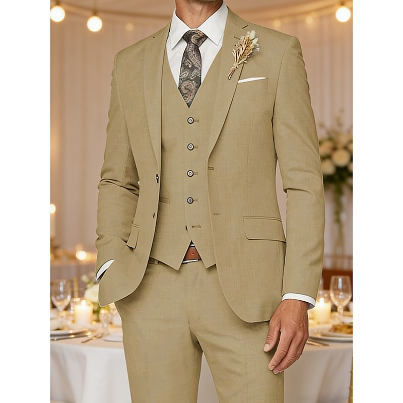 Men's BlazerVestDress Pants Blazer Business Work Wedding Fashion Streetwear Fall Winter Terylene Plain 3-Piece Single Breasted Blazer Black Champagne Pink khaki