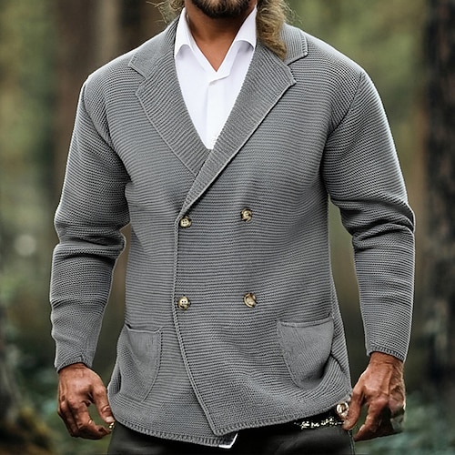Felpa Maglione da abito Cardigan Giacca maglione A coste Maglia Abbottonare Tinta unica Elegante Abbigliamento Autunno Inverno Nero Blu marino scuro XS S M