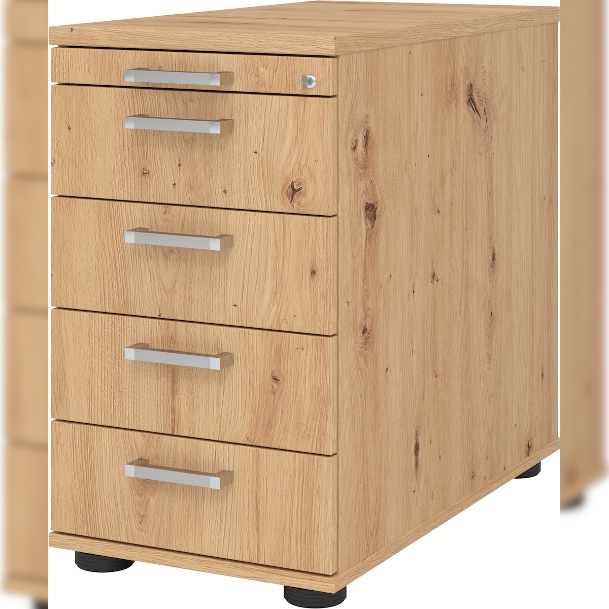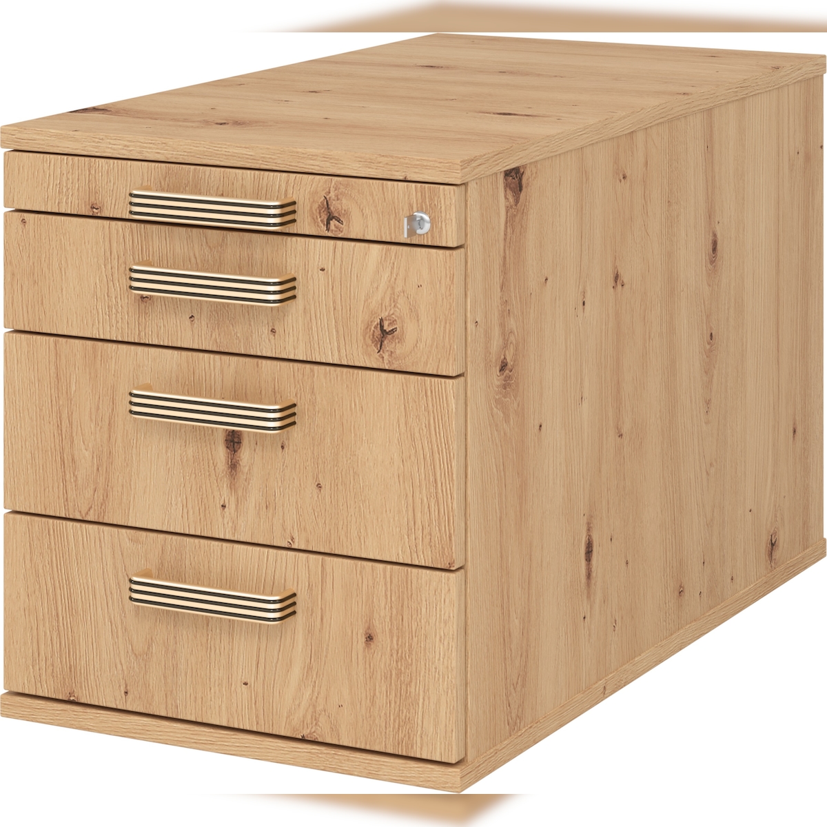 bümö Schreibtisch Schrank abschließbar, Schubladenschrank Holz in Asteiche, Container mit Schubladen - Schubladen Schrank Büro, Schreibtisch