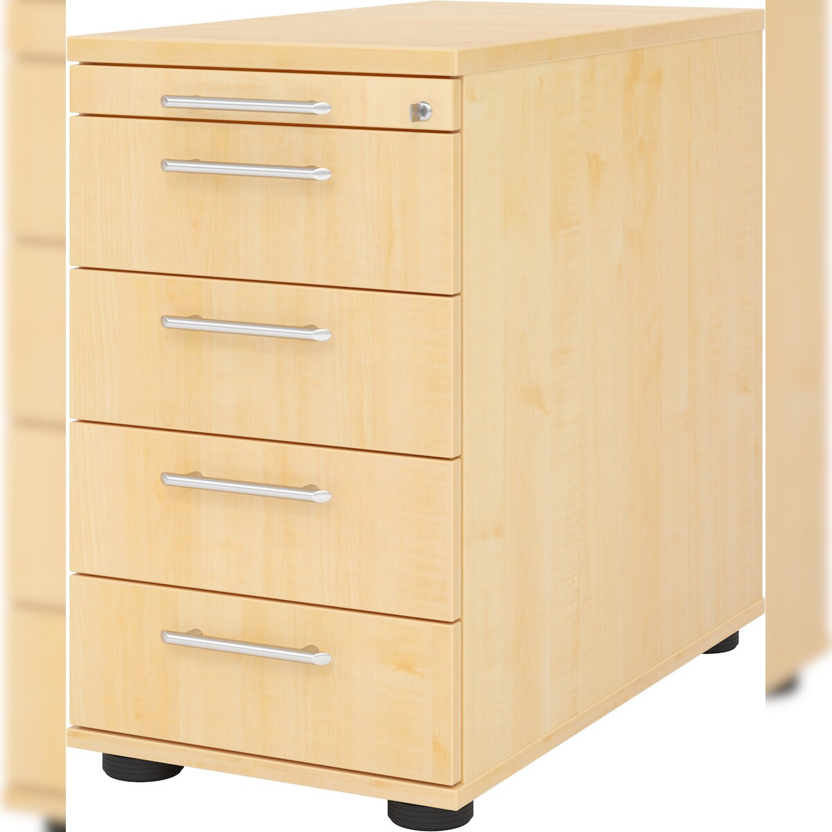 bümö Schreibtisch Schrank abschließbar, Schubladenschrank Holz in Ahorn, Container mit Schubladen - Schubladen Schrank Büro, Schreibtisch Container
