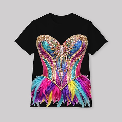 Stampa Martedì Grasso 2026 Corte T-shirt Grafico per Per donna Adulti Stampa 3D per Carnevale martedì grasso Club Festival