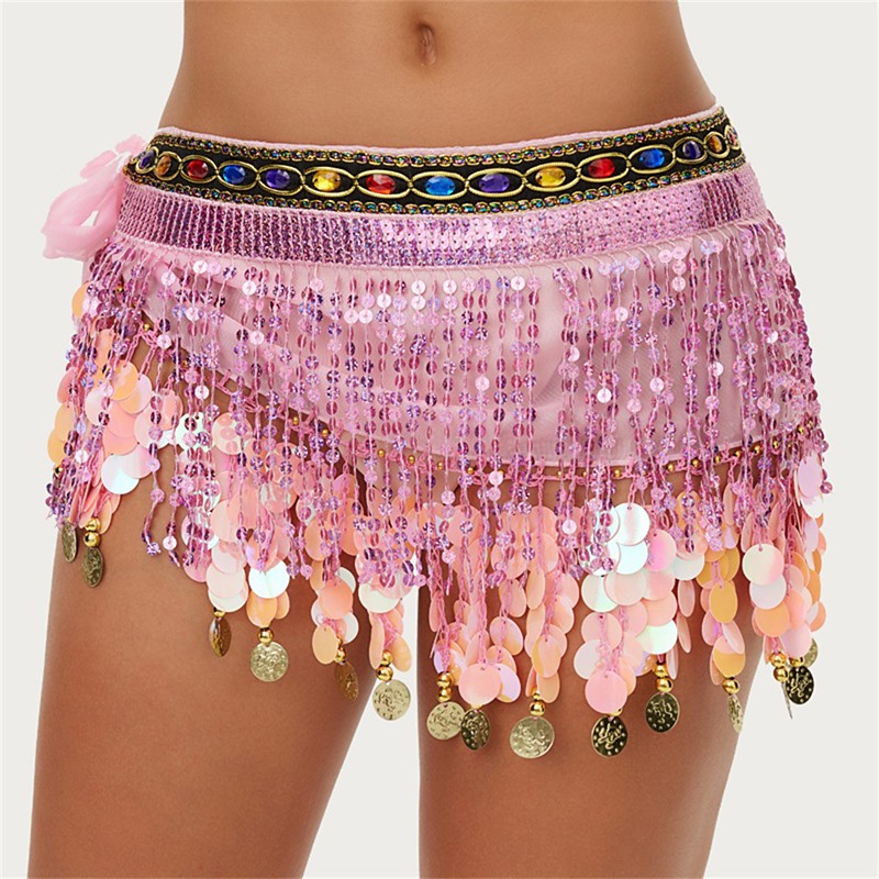 Carnevale 2026 Abbigliamento da danza Samba di Rio Carnevale Gonna avvolgente in paillettes - Sciarpa per fianchi da danza del ventre gonna a frange scintillanti Costume da rave Brasile Festival