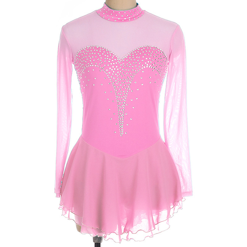 Figure Skating Dress Women's Girls' Ice Skating Dress Pink Patchwork Mesh Spandex High Elasticity Training Practice Professional Skating Wear Classic Crystal / Rhinestone Sleeveless Ice Skating