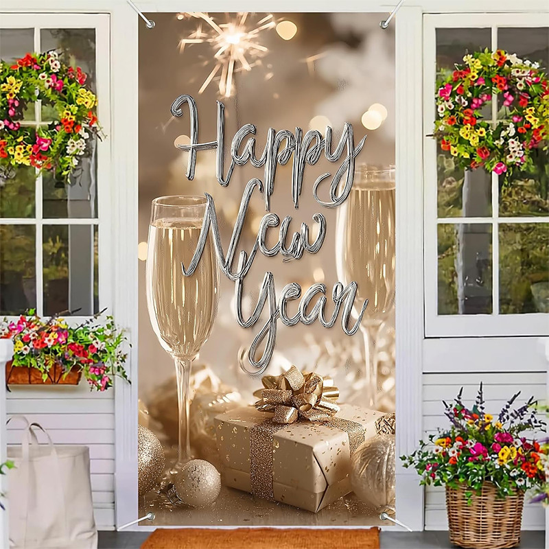 New Year Posters Door Cover Outdoor Banners Happy New Year 2026 Cute 3D Party Dorm Teens Room College Dorm Guys Man Cave Frat Bedroom Shooting Backgrounds Home Decor