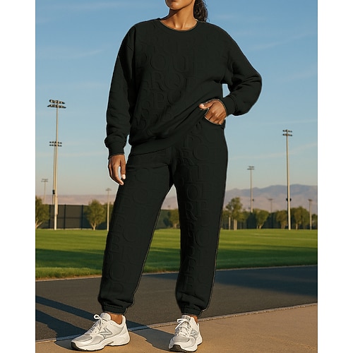 Per donna Tuta da Ginnastica Felpa pullover Abbigliamento sportivo Tinta unita Completo Abbigliamento Autunno Nero Bianco All'aperto Viaggio Sportivo Vita Alta Di tendenza Manica Lunga Sport