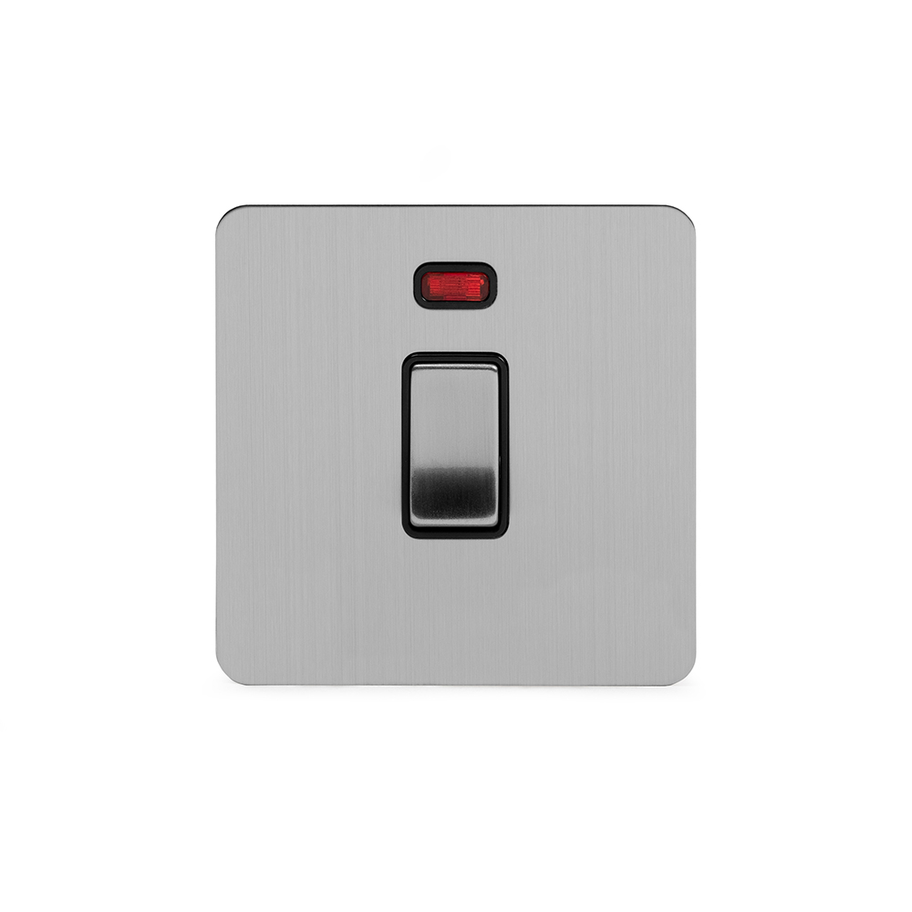 Soho Lighting Brushed Chrome Flat Plate 20A 1 Gang Double Pole Switch With Neon Blk Ins Screwless