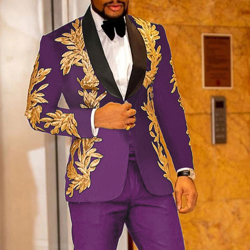 Men's Party Tuxedos Sparkle White Yellow Floral Print Standard Fit 2 Piece Single Breasted One-button