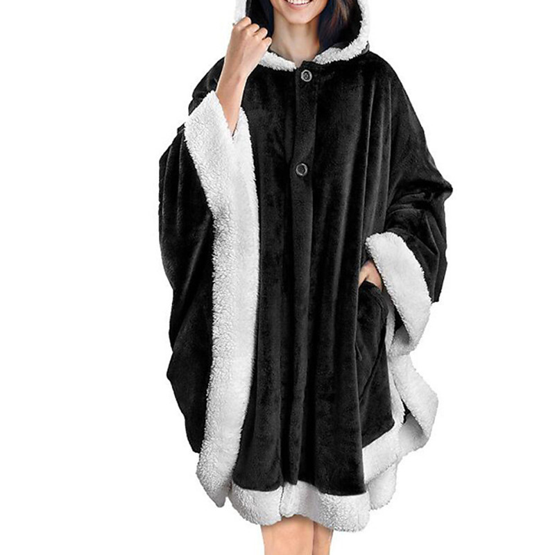 Women's Pajamas Loungewear Flannel Warm Fashion Wearable Blanket Hoodie Patchwork Patchwork Pocket Buttons Pant Vacation Home Bed Long Sleeve Crew Neck Black Yellow Wine Light Grey Fall Winter Loose