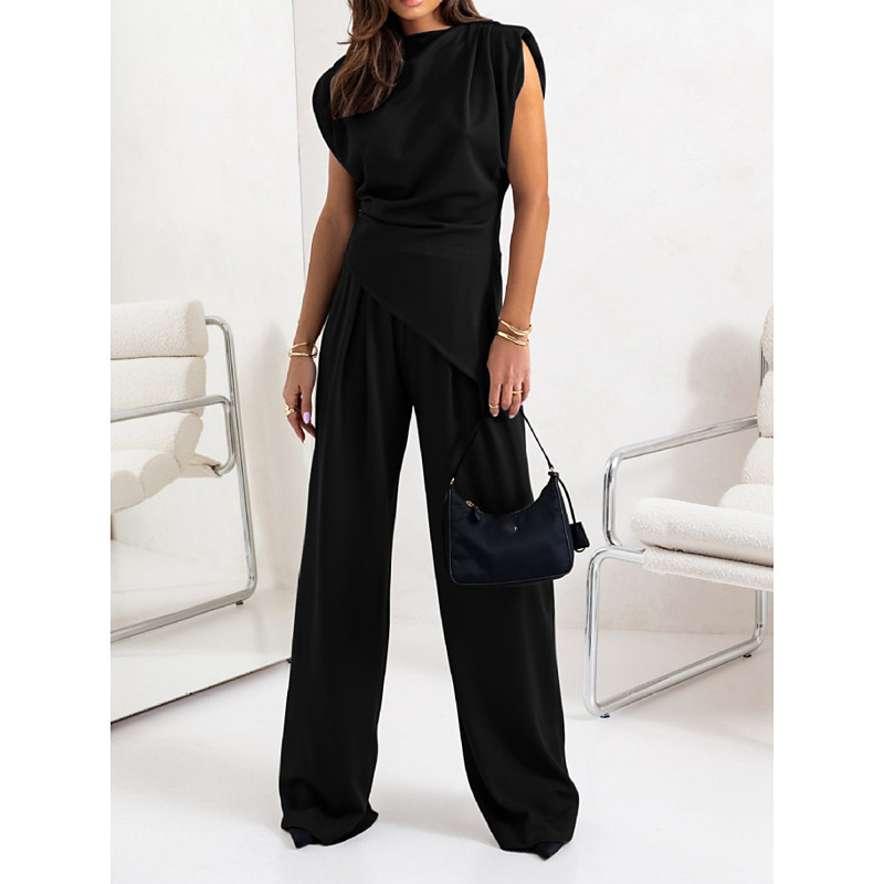 Women's Elegant Fashion Streetwear Pants Sets Bolero Top Sleeveless Crew Neck Solid Color Casual Daily Outdoor Dark Grey Black White Summer Loose Fit