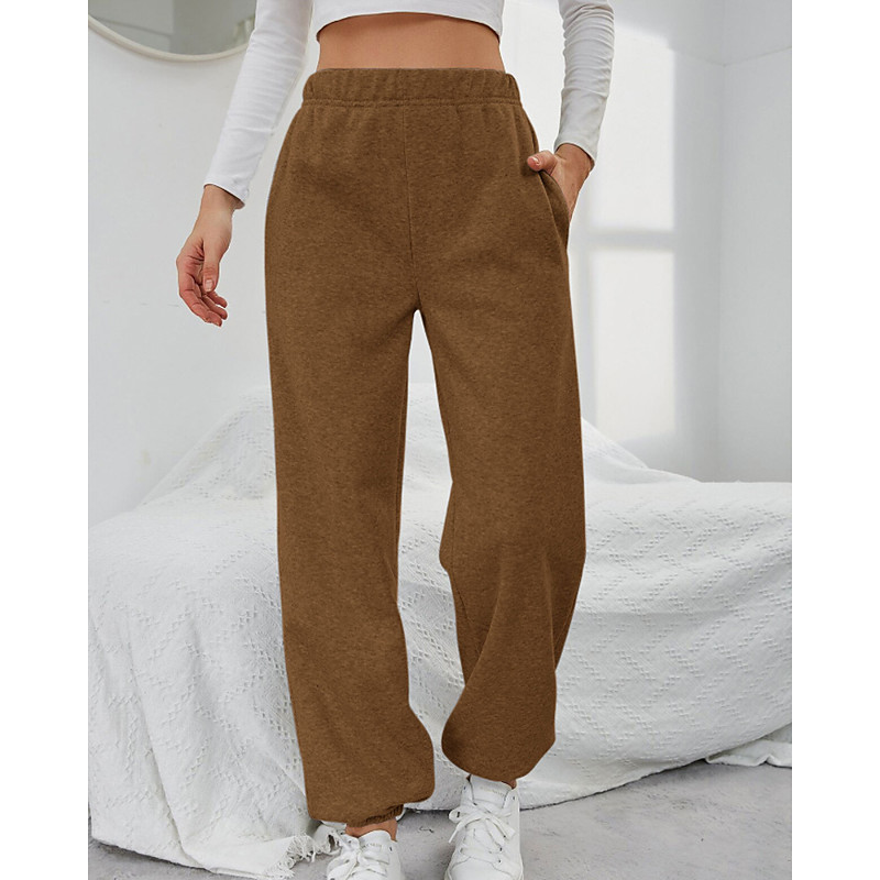Women's Fleece Pants Slacks Fashion Basic Casual Full Length High Waist Plain High Cut Comfy Soft Comfortable Stretchy Home Daily Winter Black Brown Gray Spring Fall Winter Loose Fit