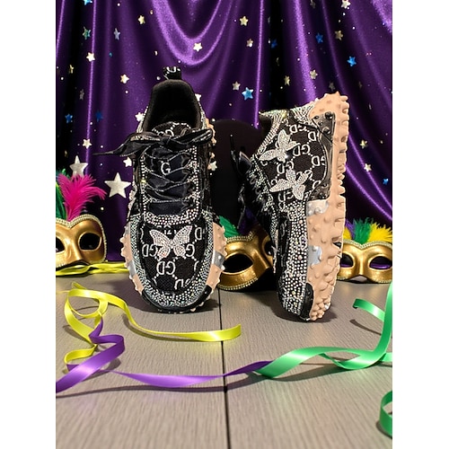 sneakers da donna in denim con decorazioni a farfalla e dettagli in strass: eleganti e comode, perfette per carnevale, festival, feste in maschera e audaci dichiarazioni di moda