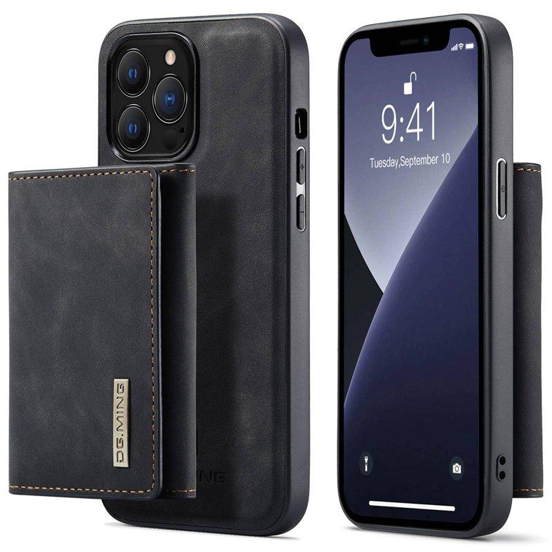 DG.MING iPhone 14 Pro Konstläder Plånboksfodral 2-i-1 Magnetisk Svart