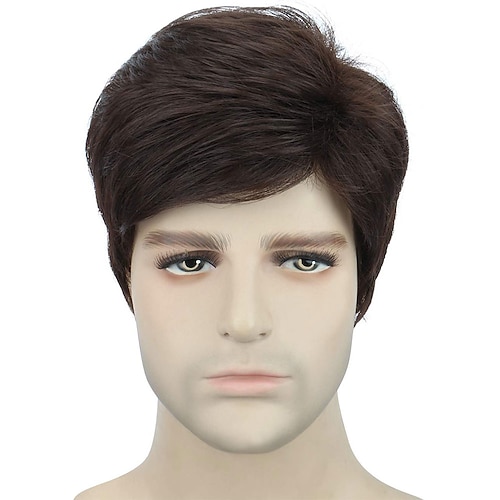 kurze, glatte, blonde Herrenperücke, hitzebeständige Kunsthaarperücke
