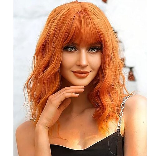 parrucca bob sintetica con frangia per donna, parrucca sintetica bordeaux resistente al calore, riccia sciolta e ondulata, parrucca bob corta rosso vino senza colla, acconciatura quotidiana