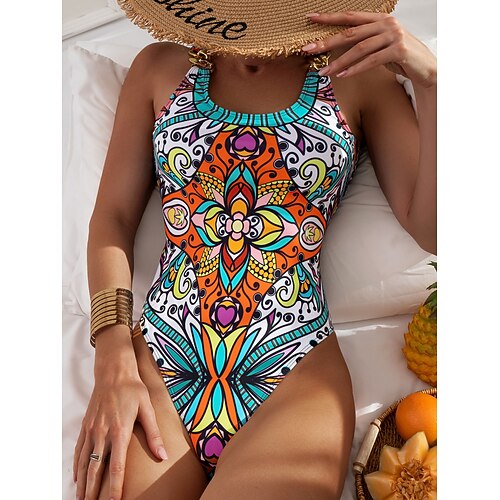 Costume da bagno intero da donna Snellente Boho Monokini Controllo pancia Alta vita Slim Senza schienale Vacanza Abbigliamento da spiaggia Floreale U Neck Senza maniche
