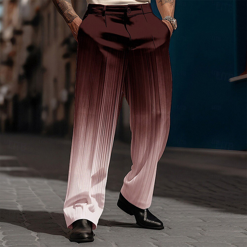 Men's Ombre Dress Pants Mid Waist Business Casual Formal Outdoor Dailywear Zipper Pocket Straight Leg Trousers Summer Spring Fall 3D Print Black Wine Blue