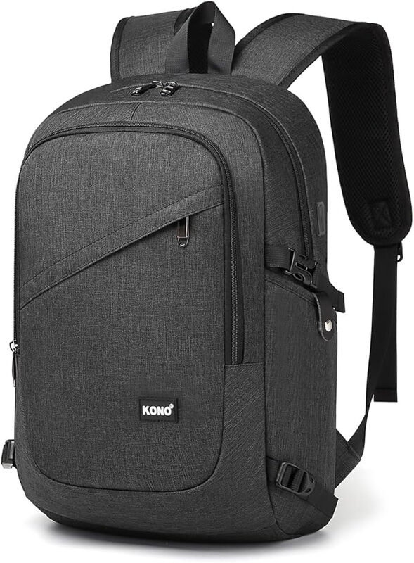 Kono Laptop-Rucksack Anti-Diebstahl-Reiserucksack Computer-Geschäftsarbeitsbeutel mit USB-Ladeanschluss Laptop-Tasche Wasserdichter Schultasche für Männer und Frauen für 15,6 Zoll (Dunkelgrau)