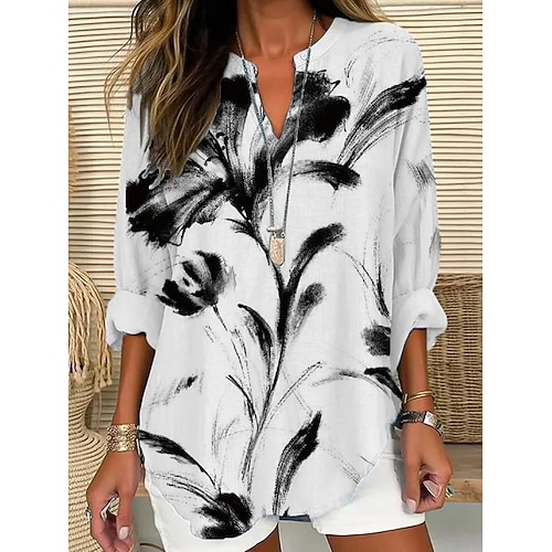 Blusa Donna Tunica Collo a V Manica Lunga Boho Casual Top Floreale Grafica Vintage Quotidiano Romantico Top Regolari Uso Quotidiano Stampa Nero Blu Viola Arancione Grigio Chiaro