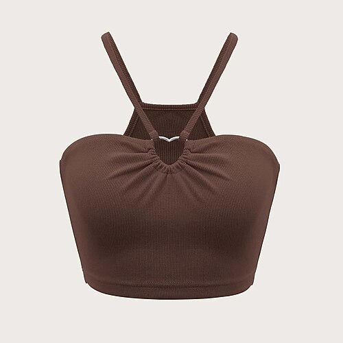 Per donna Top corto avvolgente Canotta a canotta Tinta unica Semplice Elegante Sexy Senza Maniche Spallina Top corti Ferie Uscire Palestra Traforato Nero Rosa Marrone Estate Primavera Autunno Inverno
