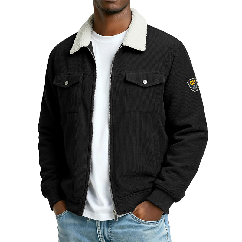 Men's Corduroy Jacket Fleece Jacket Formal Home Thermal Warm Pocket Fleece Collar Fall Winter Solid Color Active Neutral Regular Black Brown Gray Jacket
