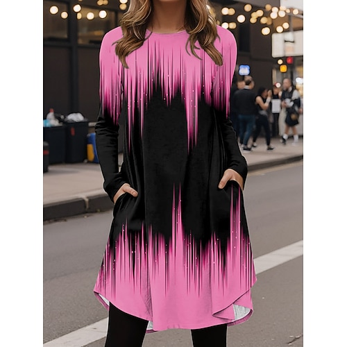 Per donna Mini Abito Vestito T-Shirt Casual Quotidiano Vestibilità regolare Grafico Geometrico Manica Lunga Girocollo Bianco Rosa Rosso Blu reale Primavera Autunno Inverno