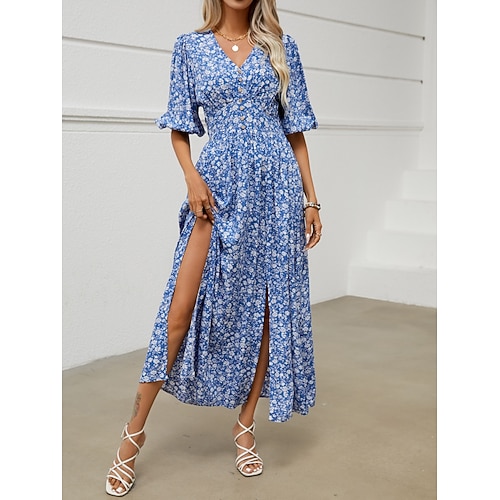 Per donna Abito Midi Vestito Canotta Moda Classico Quotidiano All'aperto Weekend Vestibilità regolare Grafico Senza Maniche Girocollo Blu Reale Estate Primavera Autunno