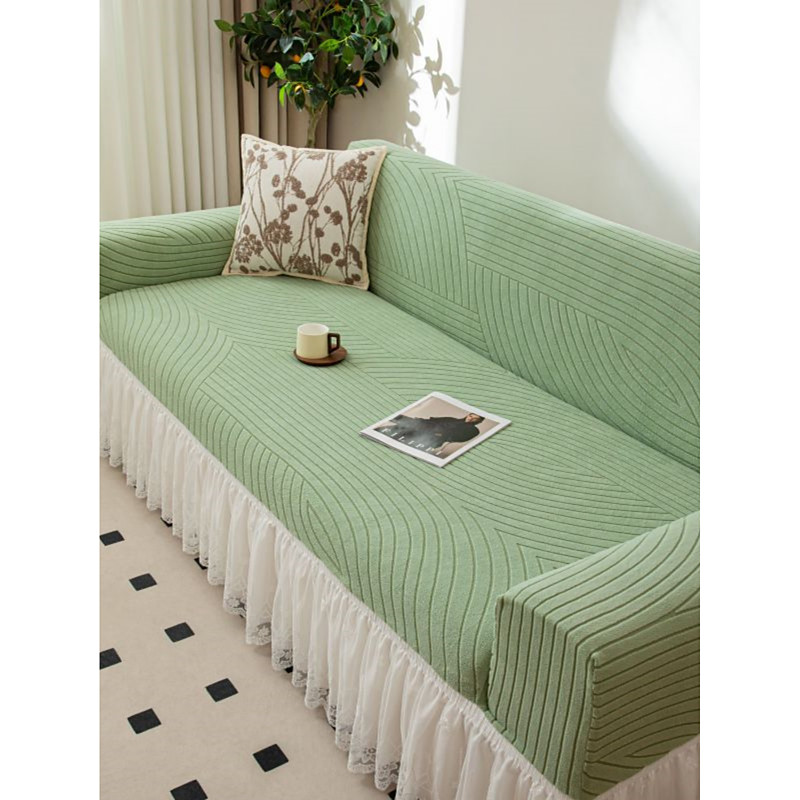 Elastic Skirt Edge Sofa Cover, Solid Color All-Season Universal Slipcover, Thickened Non-Slip Sofa Protector for High-End Look