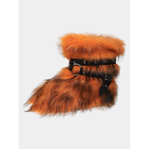 stivali invernali da donna in pelliccia sintetica con dettaglio cintura - comodi elegante design ispirato ai vichinghi nordici, perfetto per le meraviglie invernali, il Natale e le avventure all'aria