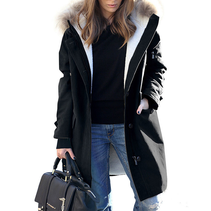 Women's Winter Coat Winter Jacket Parka Windproof Warm Fur Trim Zipper Pocket Fur Collar Chic Modern Casual Daily Street Style Solid Color Outdoor Vacation Valentine's Day Street Zipper Long Hoodie