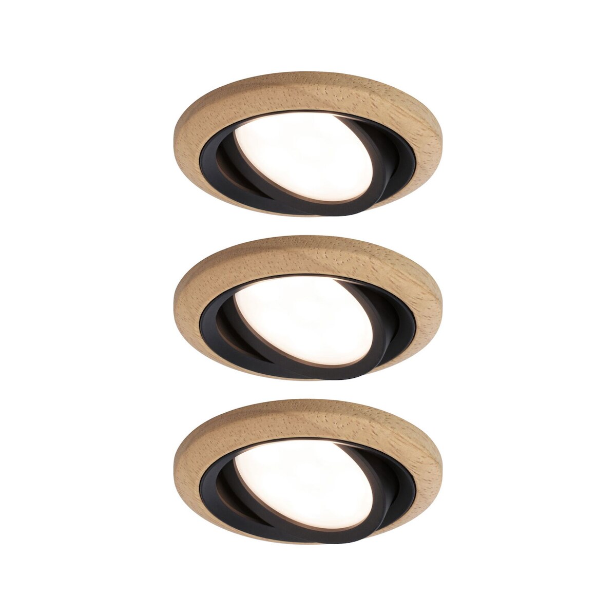 Paulmann LED Einbauleuchte Lanati 3er-Set rund 84mm 30° Coin 3x6W 3x470lm 230V 2700K Holzoptik Eiche#Schwarz matt 92237