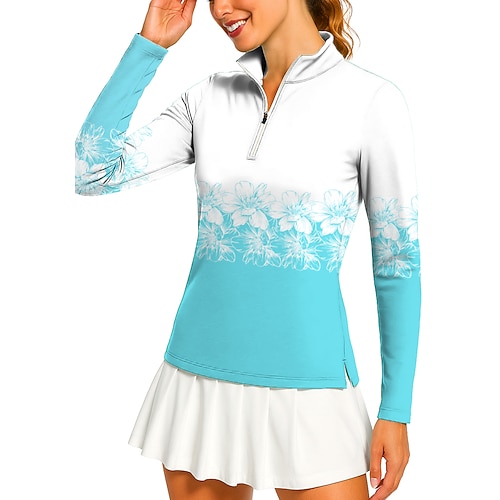 Per donna Geometrico Floreale Polo da golf Maglia da tennis Maglietta da tennis Manica Lunga Stampato Zip a un quarto Pullover Protezione UV Elastico Traspirante Tennis Golf Pickleball Collo Alto