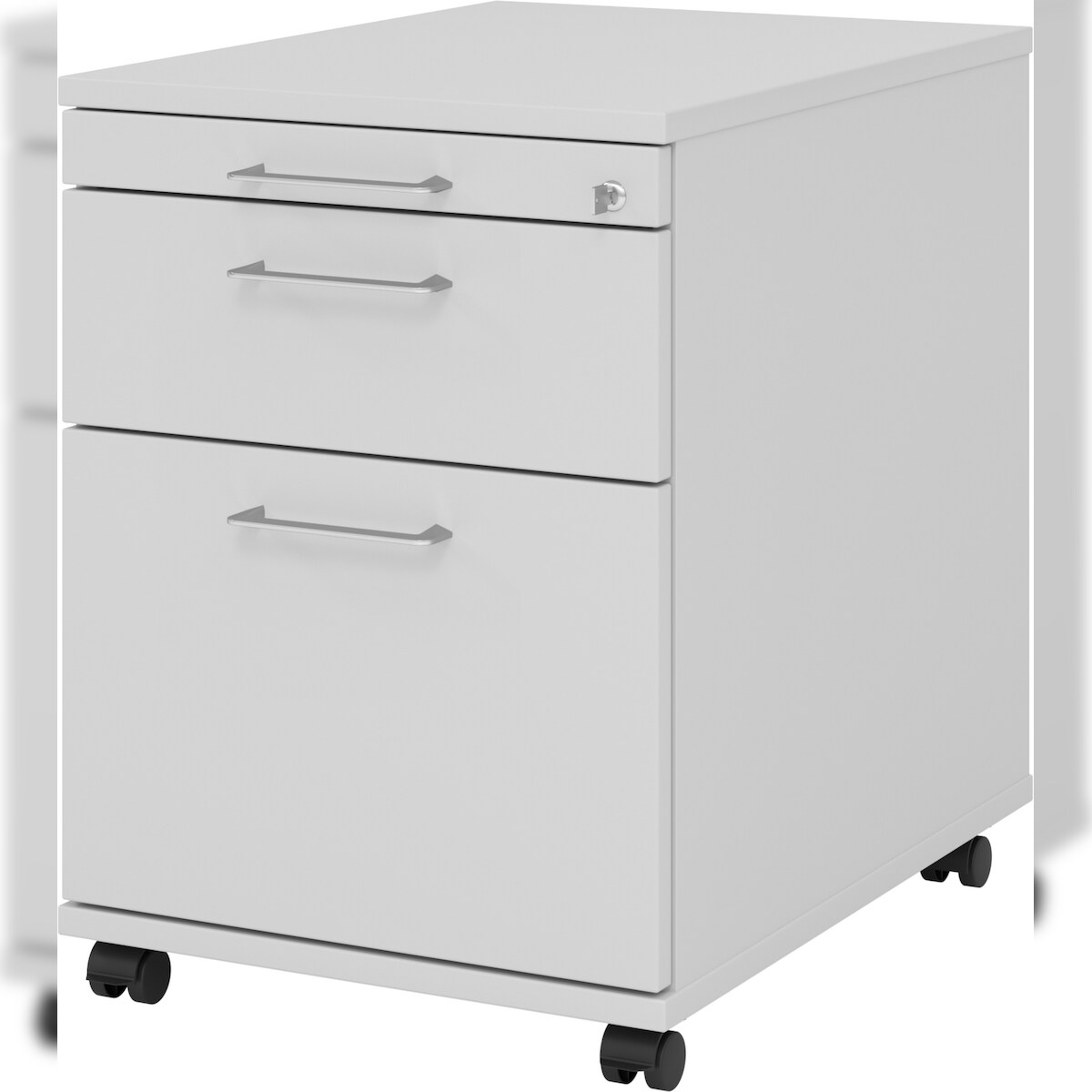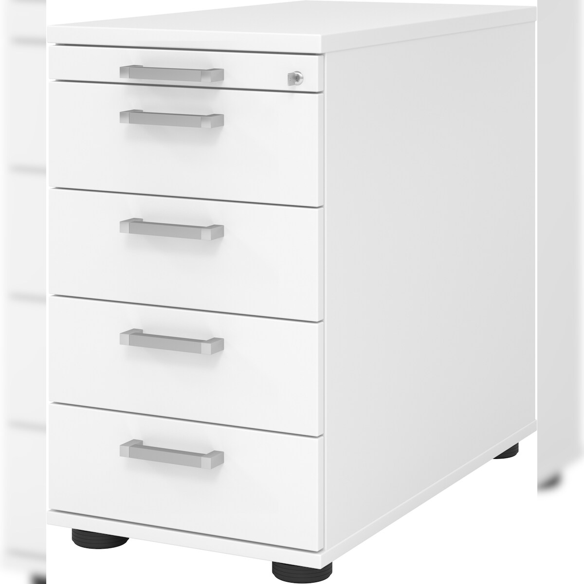 bümö Schreibtisch Schrank abschließbar, Schubladenschrank Holz in weiß, Container mit Schubladen - Schubladen Schrank Büro, Schreibtisch Container