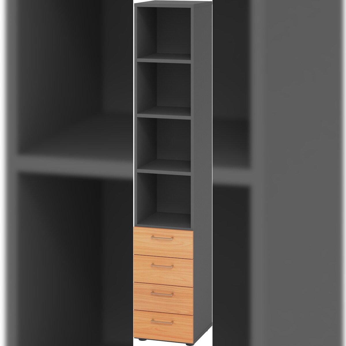 bümö smart Schubladenschrank, Büroschrank in Graphit/Buche mit 4 Schüben & 4 Regalfächern - Bürocontainer aus Holz, Container mit Metallgriffen &