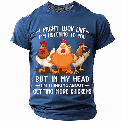 T-Shirt Divertente da Uomo Grafica Gallina a Maniche Corte - 'Pensando A Più Galline' Regalo Per Amanti Degli Hobby