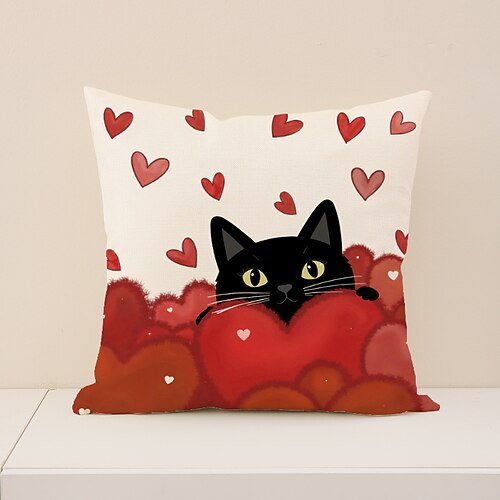 federa per cuscino con stampa di gatto per San Valentino, cuscino decorativo con design a cuore, perfetto per divano, soggiorno, camera da letto, ideale per creare un'atmosfera romantica per le