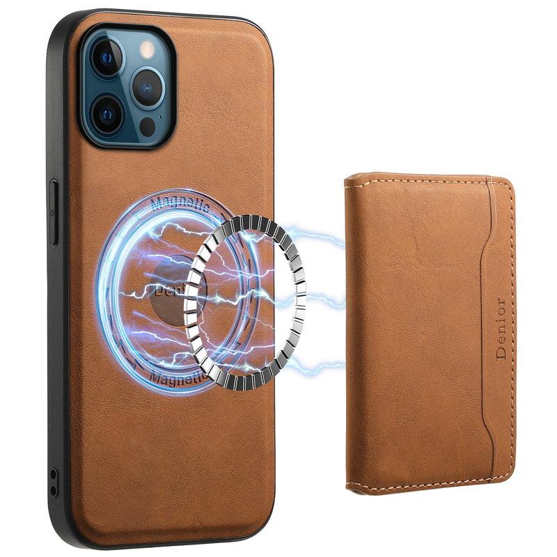 DENIOR D13 iPhone 12 Pro Max Fodral Retro Textur PU+TPU+PC Brun