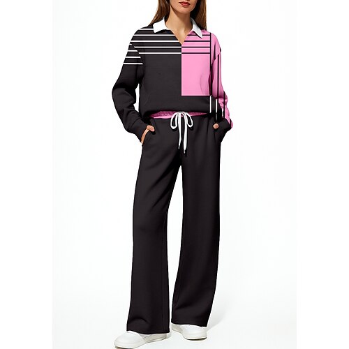 Per donna Maglia Tuta da Ginnastica Tuta da 2 pezzi Coulisse Tasca Geometrico Set di Abbigliamento Sportivo Completo Abbigliamento Autunno Giallo Rosa Lavoro All'aperto Viaggio Leggero Di tendenza