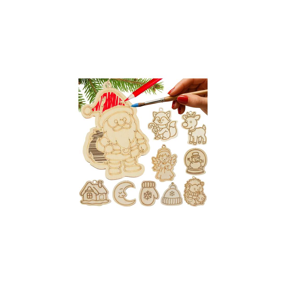Træjulekugler til gør-det-selv-maling – 24 stk. med snore